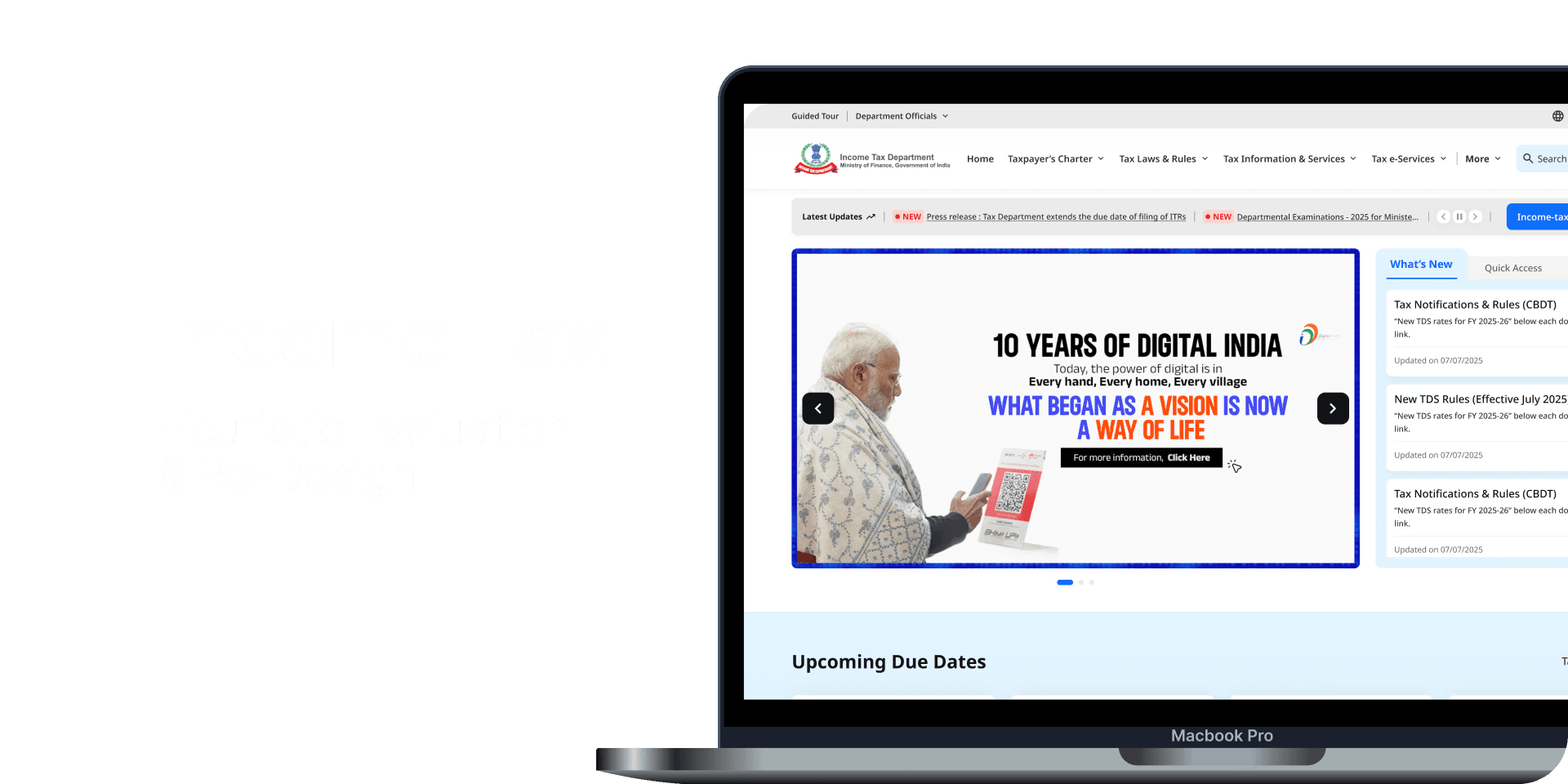 Evaluated and redesigned the Income Tax India website using UX heuristics, focusing on improving navigation, reducing cognitive load, and creating a cleaner, more user-friendly experience for taxpayers across devices.